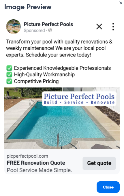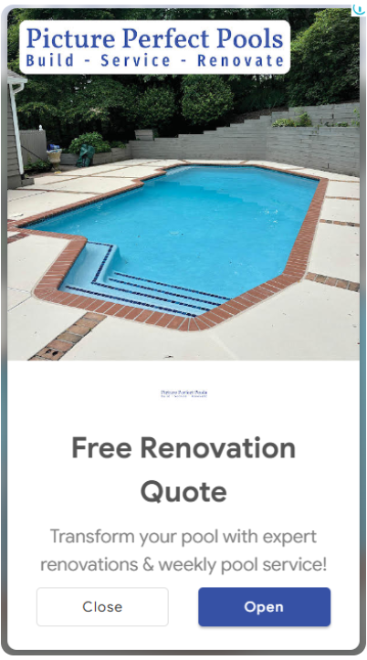 My Pool Guy MD signed up for an Everywhere Small Business campaign that included this postcard and online ads on Facebook, Instagram, and Google. They mailed a total of 24,000 postcards to local homeowners who have pools. The postcards were mailed every two weeks in quantities of about 5,000 pieces.