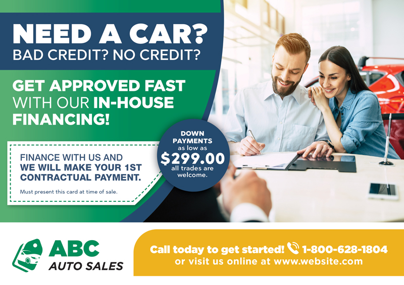 When it comes to car dealership marketing, you need to have unique marketing collateral that adequately defines your company. We have worked with hundreds of car lots, dealerships, and auto sales professionals and know what works to bring in leads and revenue. We have car dealership advertising ideas as well as car dealership marketing plans that deliver real results. You can select a car dealership template postcard and customize it with your logo and contact information or contact us for a one-of-a-kind auto dealer postcard design. All you have to do is scroll through the samples and select one that fits your style and needs best. We also have additional car dealership marketing advice that you can use for your auto business on our website.