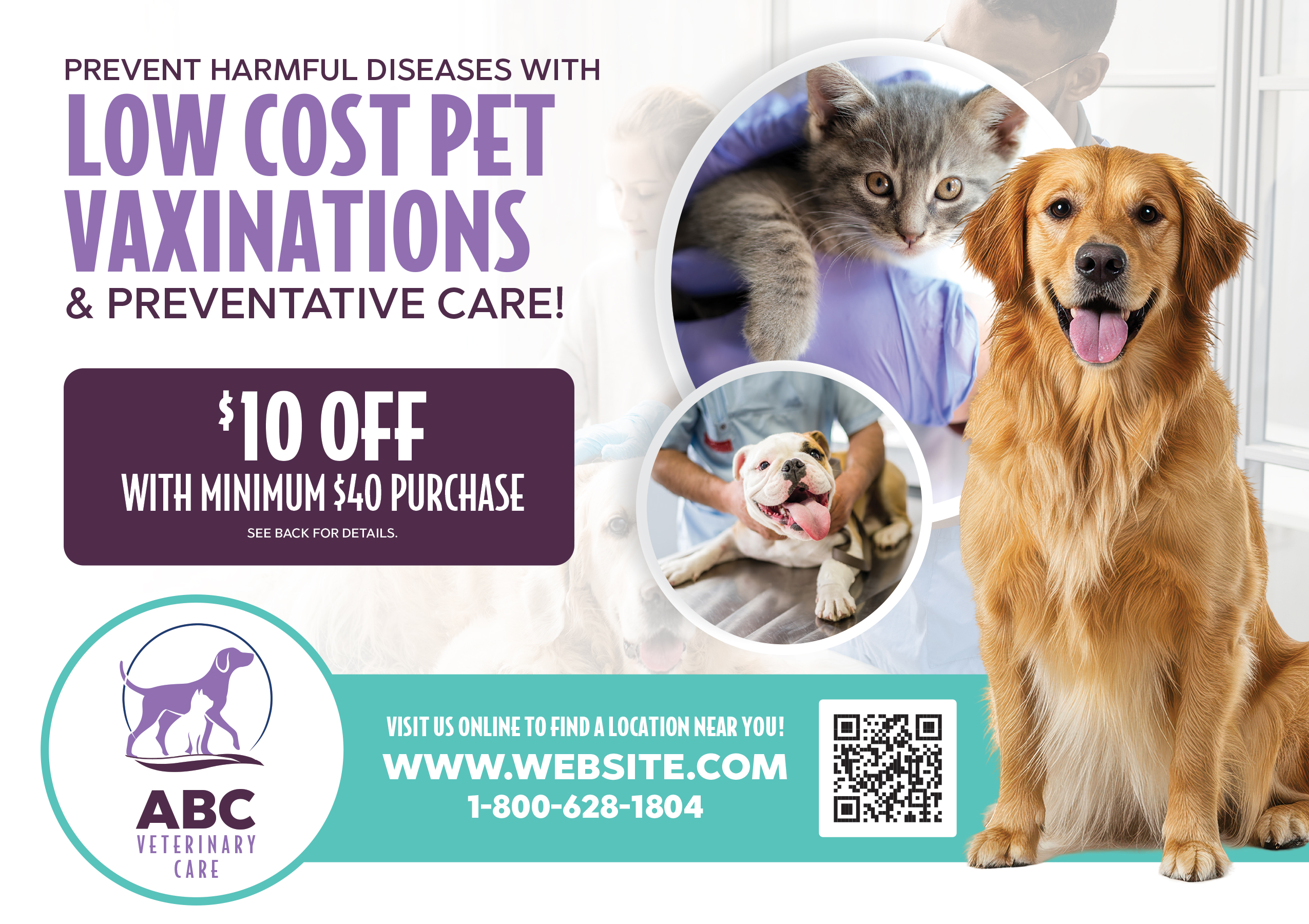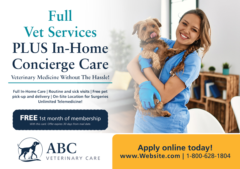 If you need to market your veterinarian office, look no further! We have veterinarian marketing ideas from postcards to flyers and letters. Some of the key elements of veterinary advertising are cute photos of pets, like dogs, cats, birds, and strong headlines to grab the attention of pet owners. We have worked with animal hospitals, pet clinics, and even veterinary marketing companies to help them advertise vet services. Browse through our veterinary postcard template library and find ideas on how to market your vet office. If you need a custom design for veterinarian mailers then we can do that too. Just call us for more information!